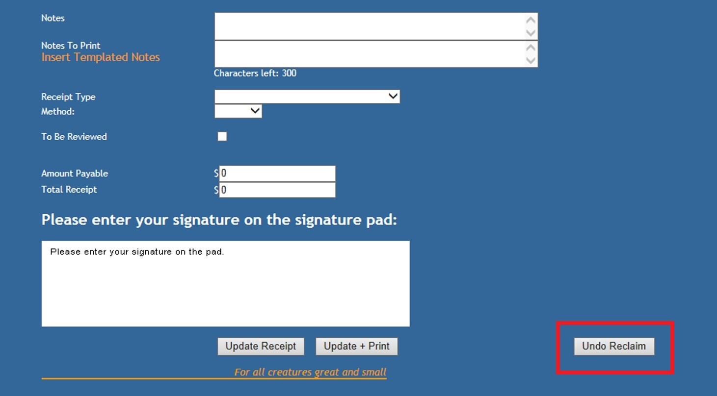 NOTE: If a reclaim/redemption is processed to the edit receipt page, but the receipt has not yet been finalised, Users have an opportunity to undo the reclaim/redemption at this point using an Undo Reclaim/Redemption button in the bottom right hand corner of the Edit Receipt page.