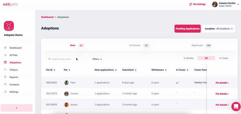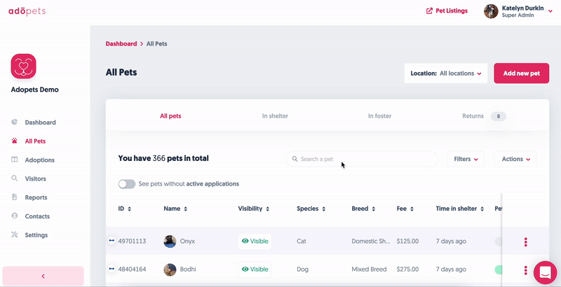 ✅ Check out your organization's All Pets menu!