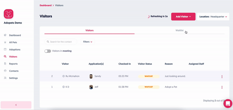 ⚠️ Can't see it? Email support@adopets.com to set up visitor management. ⚠️