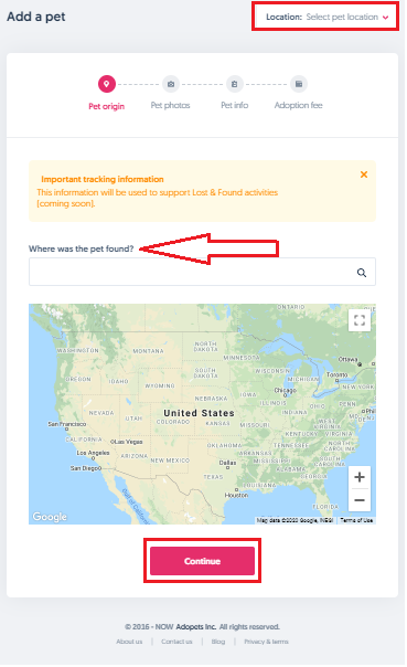 2) Input information in regards to Where was the pet found if applicable: