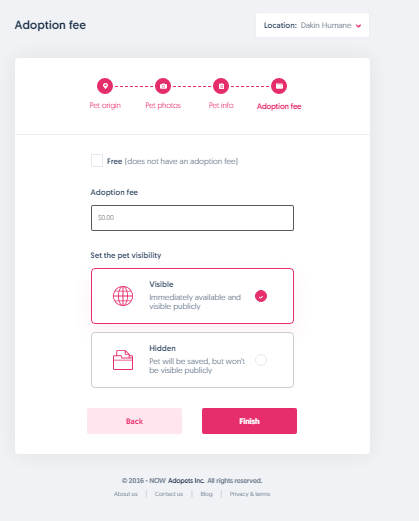 • Here, you have the option to either set an adoption fee or make the pet free.