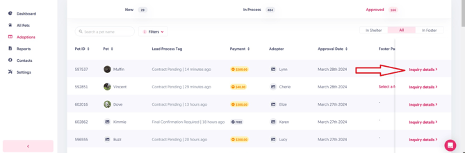 Suppose the adopter is unresponsive, and you'd like to give the next adopter in line a chance at the adoption, all you have to do is access that approved application and Cancel it. After that is done, make sure the pet's visibility is toggled "ON" if you want that pet publicly available again.