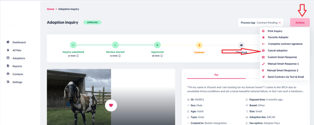 Step 4: Click Actions, then Cancel adoption to proceed with the cancellation.